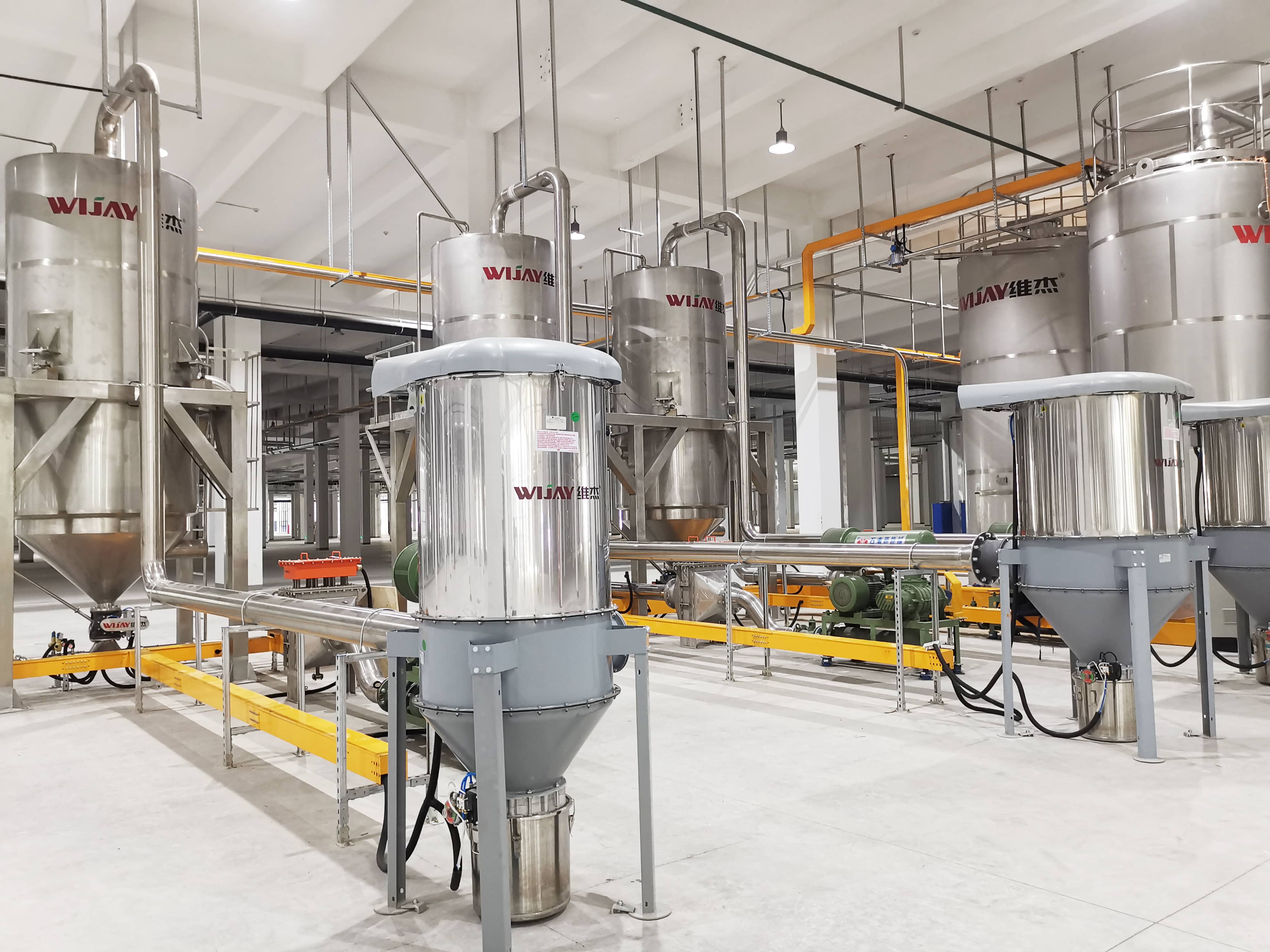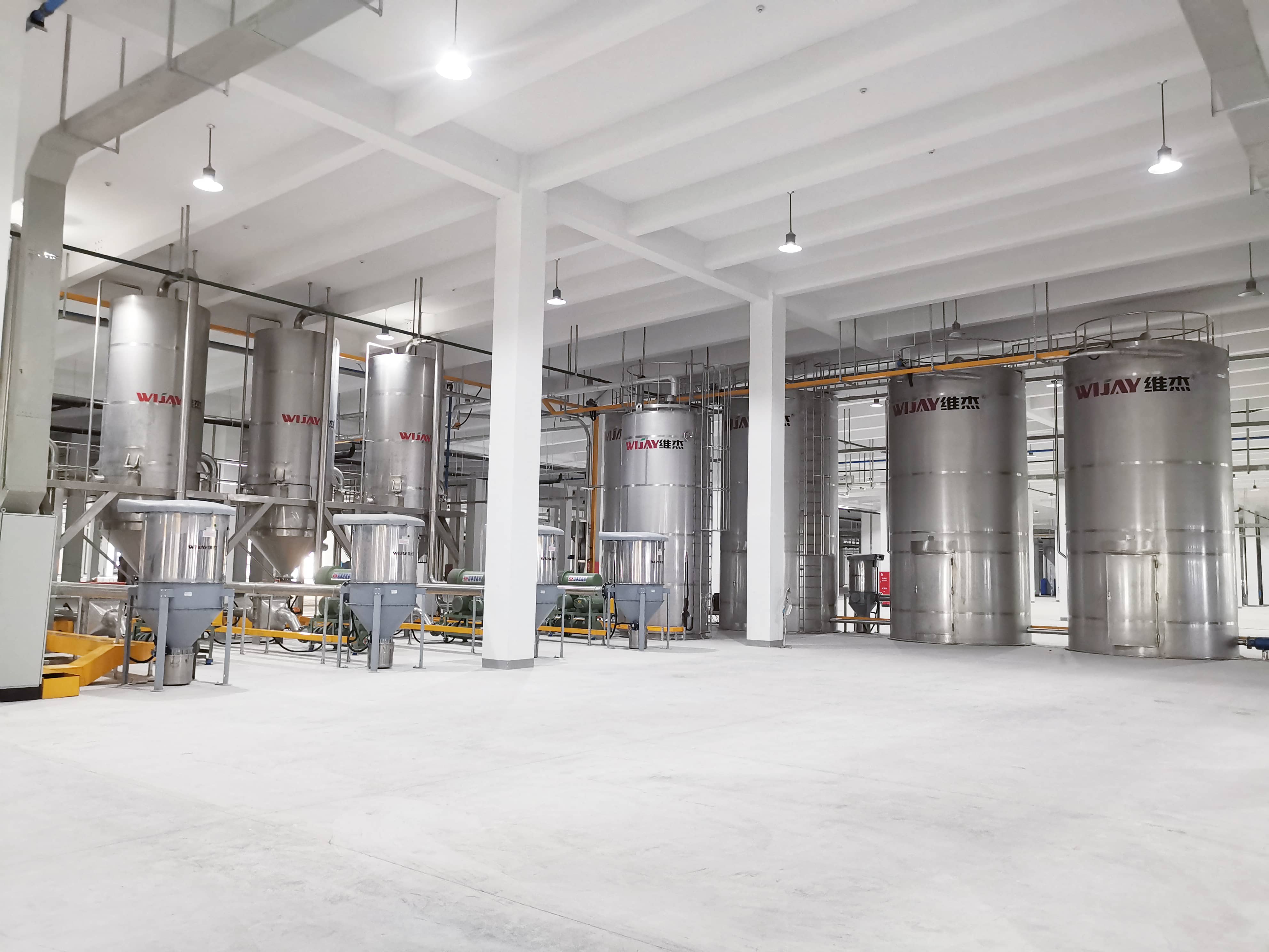 该项目是自动化与信息化的全面实践,所有的物料信息及使用情况都实现了数据的测量及记录,系统上位机软件与工厂MES系统深度融 合,并且与企业ERP系统互联互通,为了探索工业4.0提供了可靠的实施平台。项目通过维杰专利技术及创新的技术方案成功解决了拉丝、 粉尘、高效干燥、在线金属剔除、超长距离输送等行业技术难题,为客户节省了大量的设备投资及大幅降低了运营费用。在线的粒料含水 率测量及调控技术大幅提高了产品优良率,为行业树立了新的技术标杆。