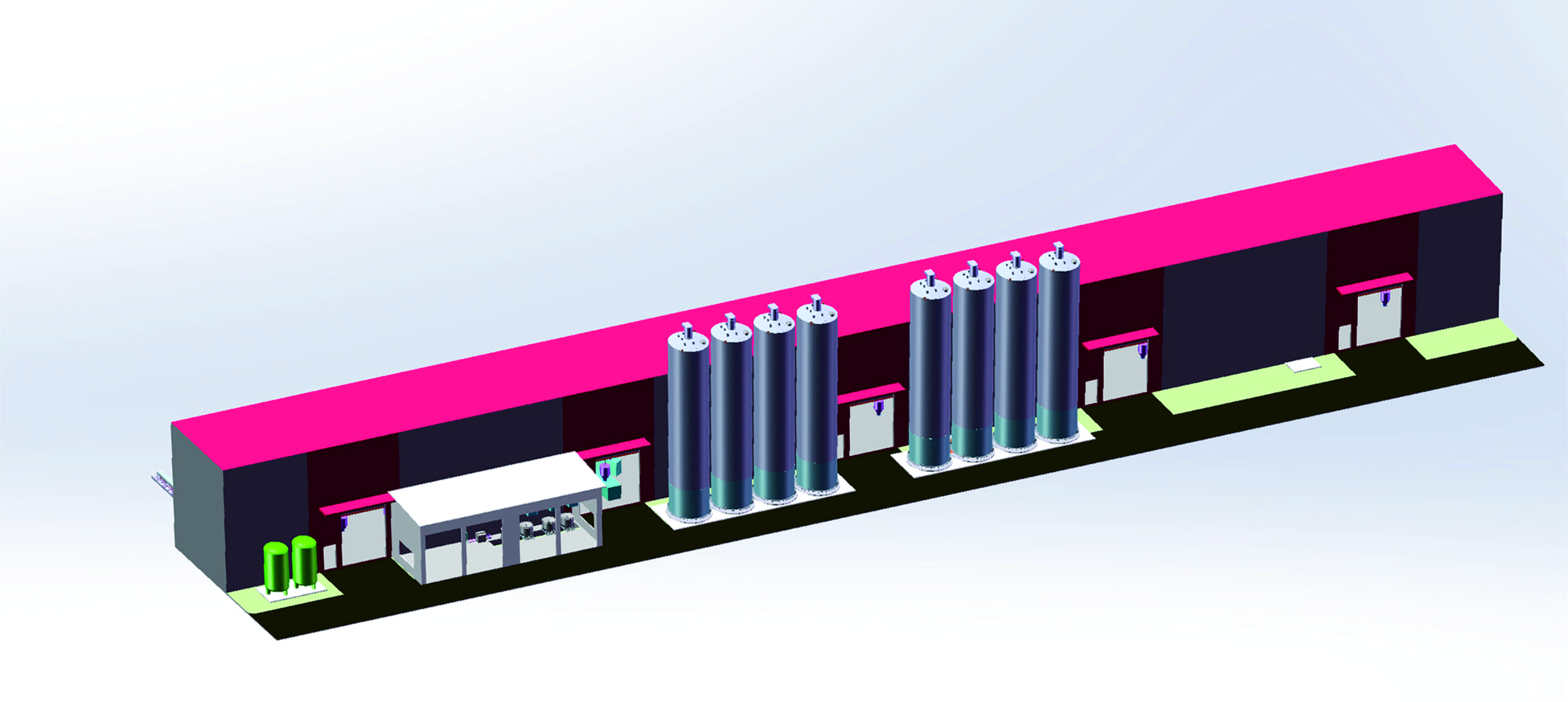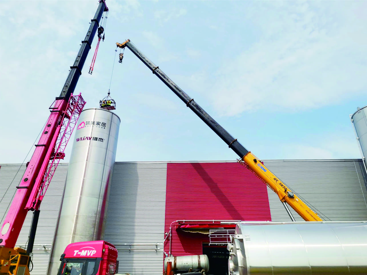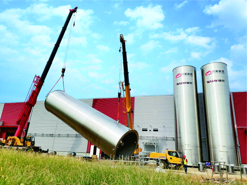 维杰创新设计的物料自动化系统为客户的46台大型板材挤出机连续供应6种不同物料,供料速度达到36T每小时,输送距离超200米, 物料储存能力达1200吨,并且实现了物料温度和温度的实时监控和调控,这是传统方式采用多个小型干燥机和吸料机组合方式,无法实现 的功能。