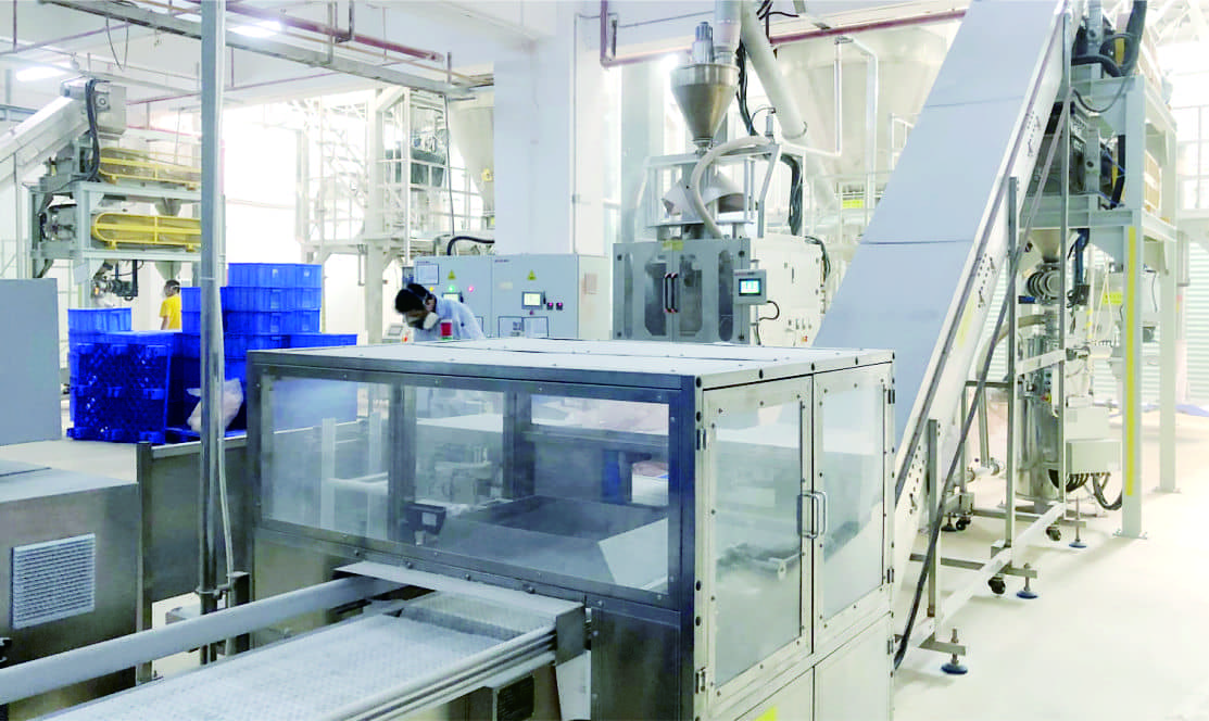 项目采用了维杰设计的专利气力混合机及全方位设计的防金属异物方案使得其产品材料性能 大幅度提升,为客户进一步巩固了行业领导地位,同时大幅降低了生产成本。项目中维杰创新设 计制袋包装一体机在高速运作情况下包装精度优于千分之二,为行业树立了新的技术标杆。
