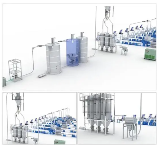 3.具有物料管抽空清管、自动洗尘集尘中央给料主机A.B交替自动切换、人工选料防错功能;