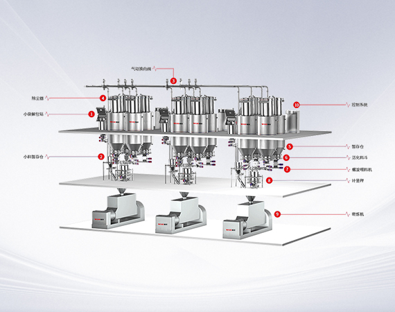 系统优势生产效率提升20%:自动化程度高,省时,省力,生产效率高 人力成本降低20%:每条生产线仅需1-2人值守,减少劳动力,降低人力成本 环保健康:采用自动投料,高精度的除尘装置和密封管道输送方式,做到投料无粉尘,保证车间整洁 不堵漏,易维护:运行稳定,不堵漏,结构简单,易维护 高精度计量:计量配料精度高达20%,提升产品的品质,降低不良品的比率 操作简单方便:自动化程度高,操作简单方便